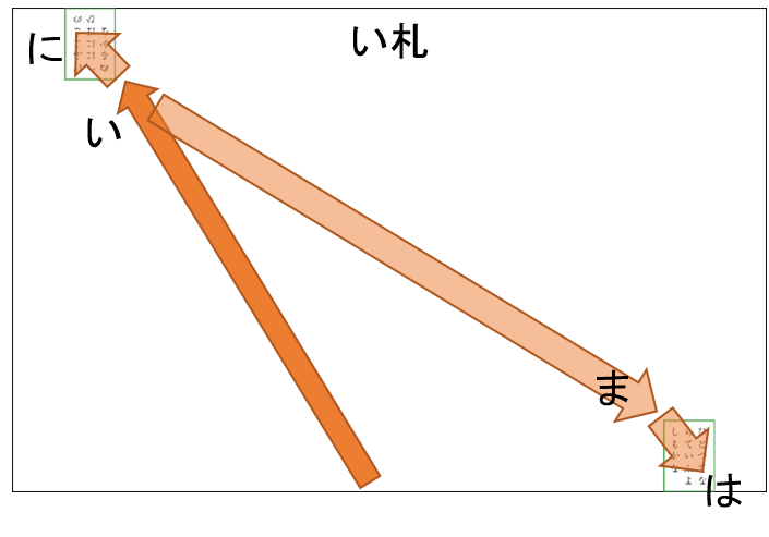 図4のあ札はより複雑になっているが、動き方を事前にイメージしておくという点は共通している。